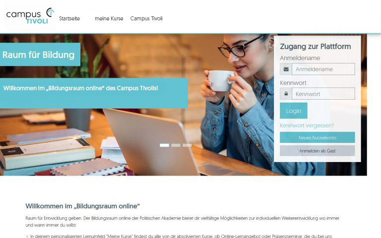 Der Bildungsraum online des Campus Tivolis bietet dir vielfältige Möglichkeiten zur individuellen Weiterentwicklung wo immer und wann immer du willst.