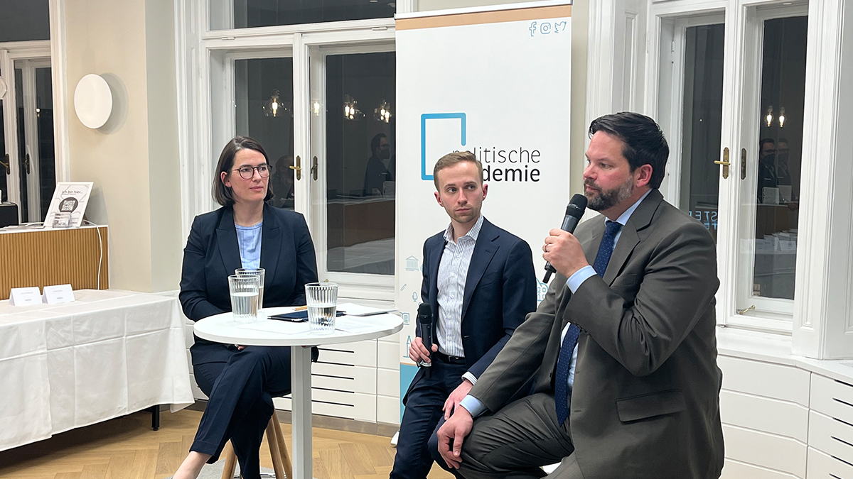 Der an diesem Tag von der russischen Führung begonnene Krieg gegen die Ukraine war bereits vor dem Start der Veranstaltung in allen Köpfen und auch gleich zu Beginn Thema des Gesprächs am Podium. Lukas Mandl hielt fest, dass es sich bei diesem Konflikt nun um einen Krieg und zwar um einen Krieg in Europa handelt und gab eine ganz klare politische Linie für die kommenden Wochen vor: „Was absolut nicht sein darf, ist das in Europa jemals wieder jemand mit einem Angriffskrieg etwas erreicht.“ Gefragt nach den wirtschaftlichen Implikationen des Krieges, sprach sich Barbara Thaler ganz klar für Sanktionen aus: „Jede Sanktion, die die Europäische Union macht ist richtig und wichtig.“