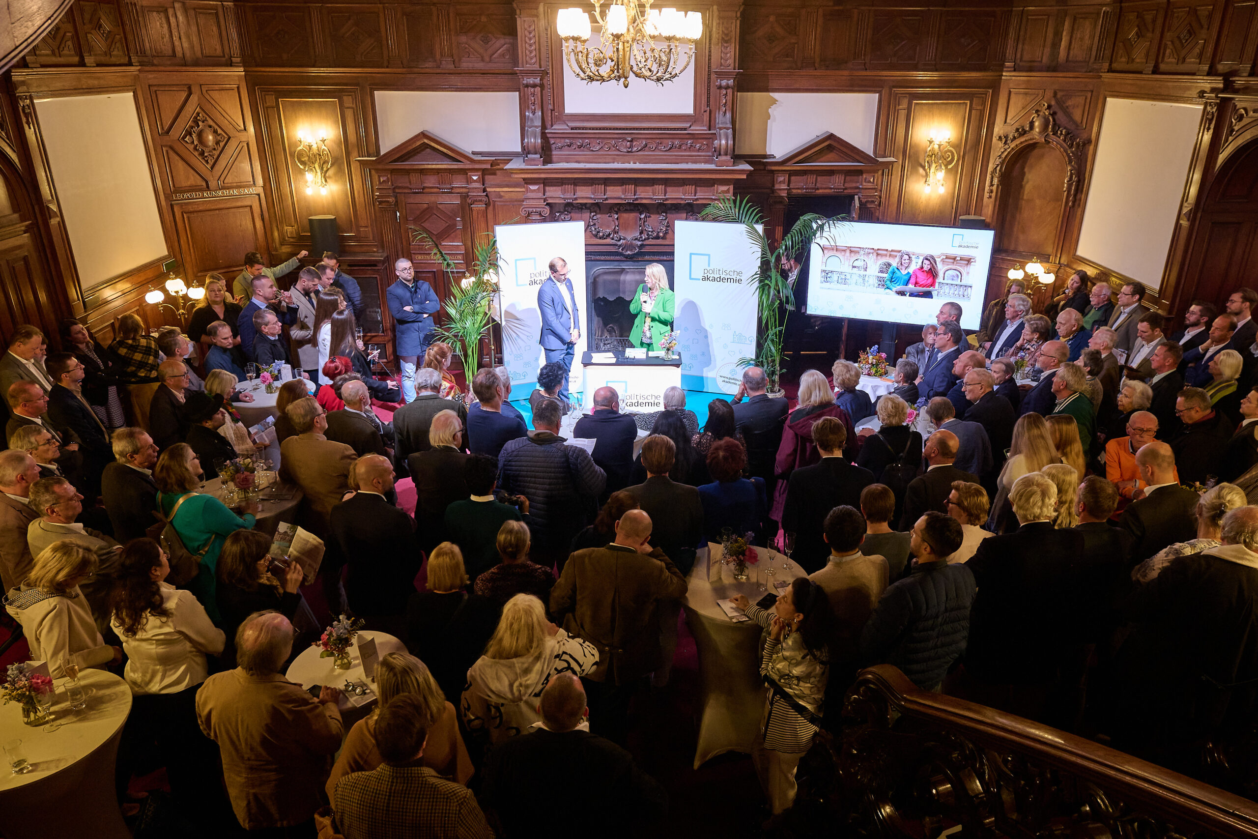 Der Abend selbst wurde mit einem dichten Programm, das gemeinsam mit Partnerinnen und Partnern der Politischen Akademie organisiert wurde, gestaltet. So gab es anknüpfend an die Schwerpunktthemen der Akademie beispielsweise Workshops mit Jahrbuch-Herausgeber Prof. Andreas Khol, Rhetorik-Trainings mit 1-minütigen Spontanreden und eine Analyse der Nationalratswahl mit Wahlen- und Parteienforscher Franz Sommer. Begeistert waren die Besucherinnen und Besucher auch von einem fachlich kommentierten Hausrundgang oder dem Besuch im Parteiarchiv.